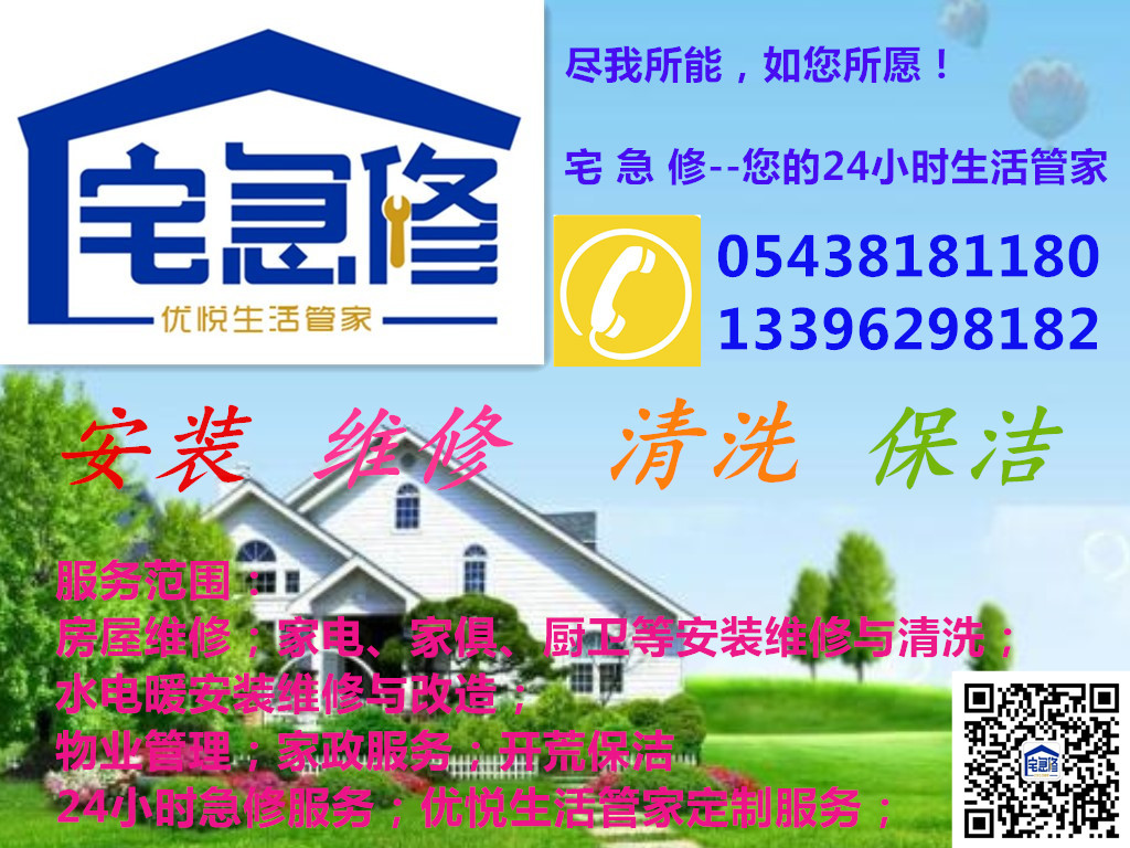 万能房屋维修、万能家电厨卫安装维修、万能清洗保养、万能防水处理